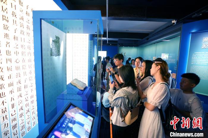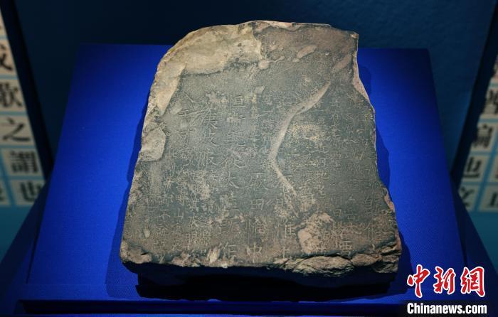 图为展览展出的四川博物院收藏的五代蜀残《尚书·禹贡》石经。中新社记者 安源 摄