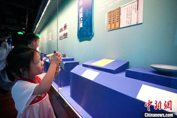 图为小朋友在展厅用手机拍摄。中新社记者 安源 摄