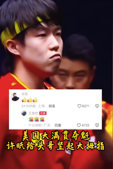 许昕给王楚钦竖起大拇指!国乒左手将的传承,未来可期。
