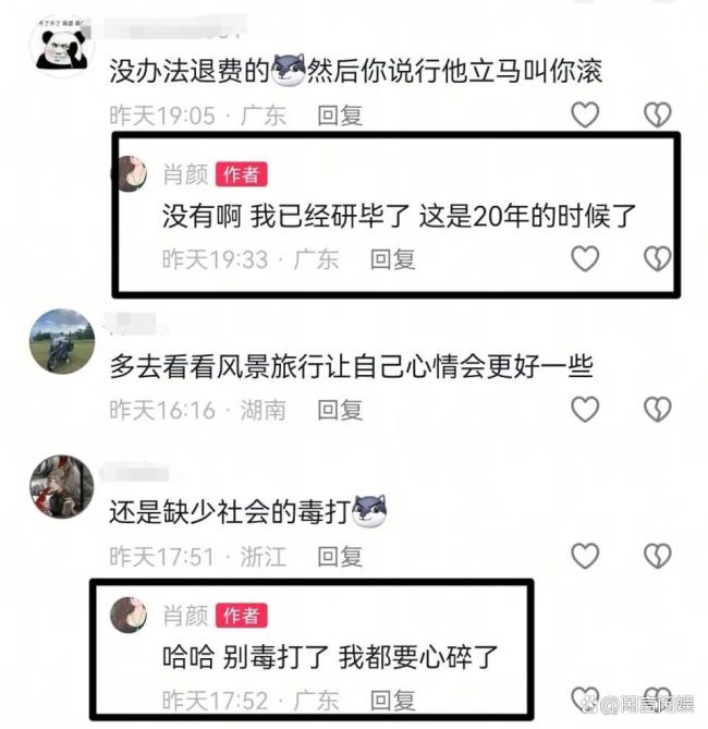 深入翻看她为数不多的视频后,发现她在生命的最后阶段深陷于一场情感纠葛中。7月14日,她发布的一段视频中满是对一位男性的抱怨。她称对方在找好下家后毫无解释地彻底断了联系,两人始终处于暧昧状态,关系迟迟未能确定。肖颜还透露,这位男性是南昌大学的博士,并且可能正与广东惠州的刘某某相处。更让人担忧的是,肖颜在视频中暗示自己要“离开”,并表示既然断联,那以后就再也不见。