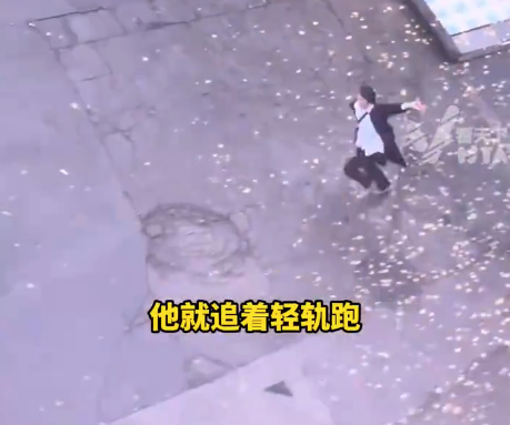 电影情节照进现实!情侣在雨中分别,男孩扔下雨伞,奔跑追逐轻轨。