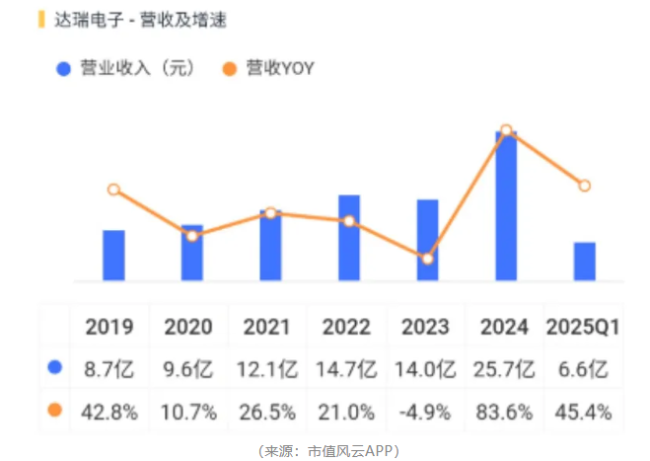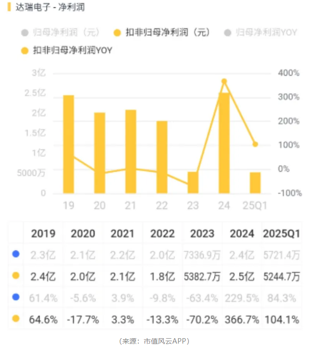 公司盈利也出现明显下滑,2024年收入高增叠加盈利能力回升,扣非归母净利润创新高,达到2.5亿元;2025年一季度,扣非归母净利润同比增长104.1%。