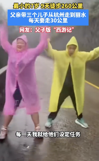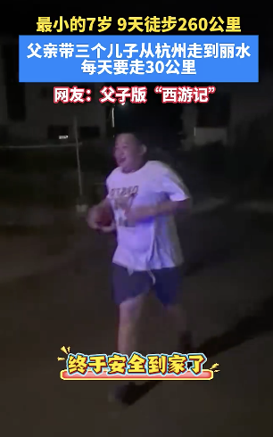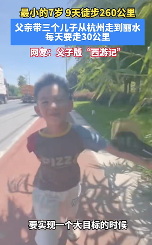 父亲带3个儿子徒步260公里!近日,丽水莲都。一位父亲带3个儿子9天徒步260公里,最小的只有7岁,从杭州走到丽水,每天要走30公里。这不仅是体能的极限挑战,更是一堂生动的“人生毅行课”。网友戏称“父子版西游记”,这趟风雨兼程的“取经路”,取回的正是坚持、勇气与亲情的真经。为小勇士们的坚韧点赞,也为这位用脚步丈量教育的硬核父亲鼓掌!