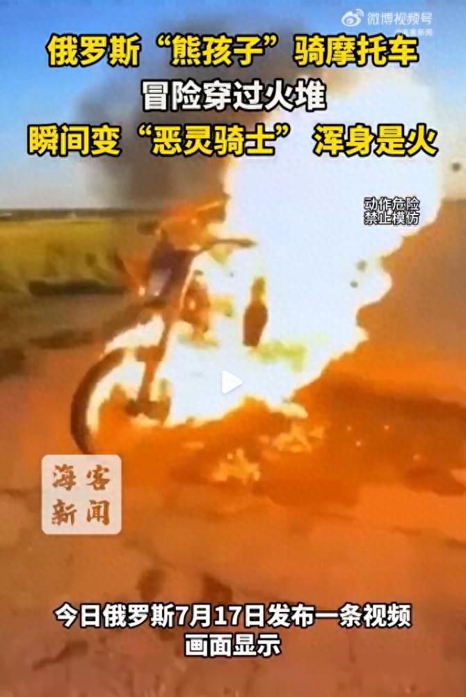 俄小学生骑摩托穿火堆秒变恶灵骑士