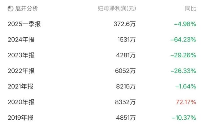 具体来看,2023年欣灵电气实现净利润4281万元,同比下降29.26%;2024年净利润1531万元,同比下降64.23%;2025年一季度净利润为372.6万元,同比下降4.98%。