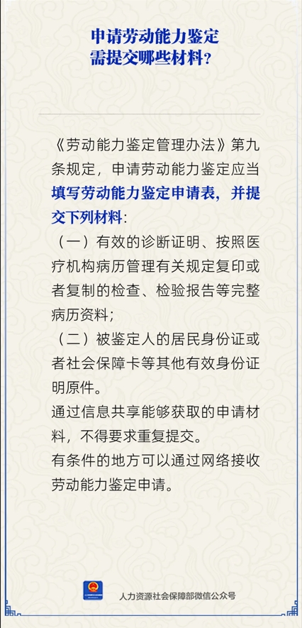 申请劳动能力鉴定需提交哪些材料?人社部解答
