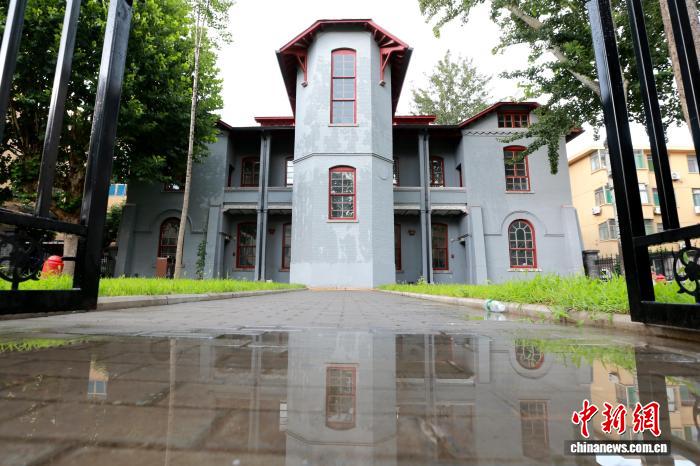 7月22日,山东潍坊,记者拍摄的潍县西方侨民集中营旧址。潍县西方侨民集中营旧址博物馆总占地44208.4平方米,现存7处文物建筑,占地面积7031平方米,总建筑面积4894平方米,文物建筑风格为中西融合式折衷主义。中新社记者 梁犇 摄