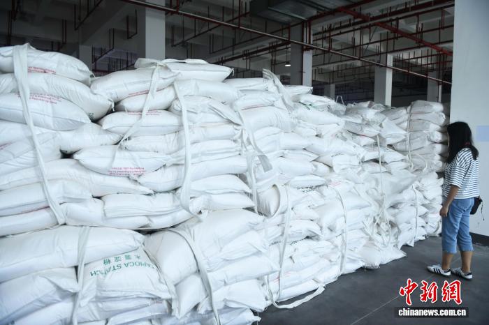 图为东盟木薯粉西南集散中心的一处仓库。中新网记者 周毅 摄