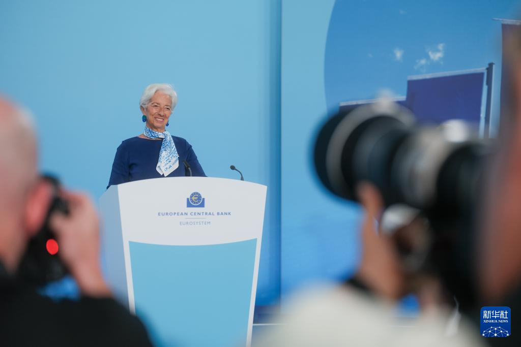 7月24日,欧洲央行行长拉加德在德国法兰克福欧洲央行总部出席新闻发布会。新华社发(欧洲央行供图)