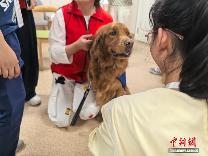 孩子们与治疗犬互动。(中新网记者 陈静摄)
