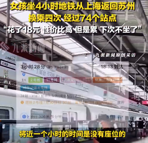 台风天女生坐74站地铁从上海回苏州:花了18元,性价比高,但是累,下次不坐了