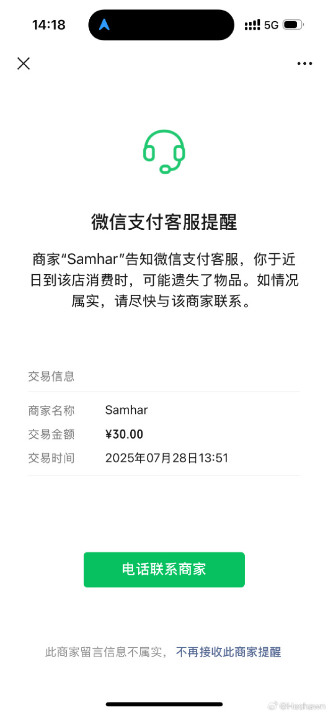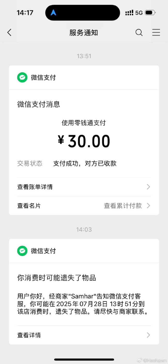 微信支付遗失提醒!竟收到商家提醒丢东西了