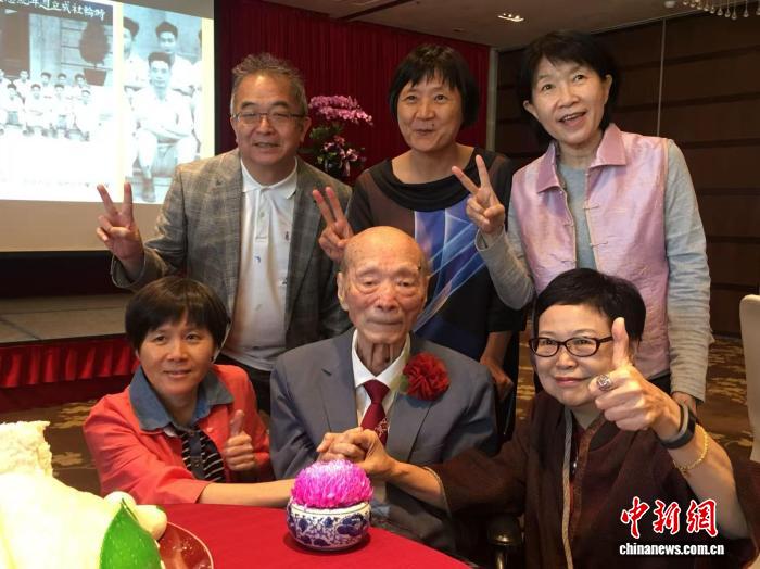 冯明珠(前排右一)主办活动为索予明(前排右二)庆贺一百岁生日,邀请近百位台北故宫博物院同仁参加。(受访者供图)
