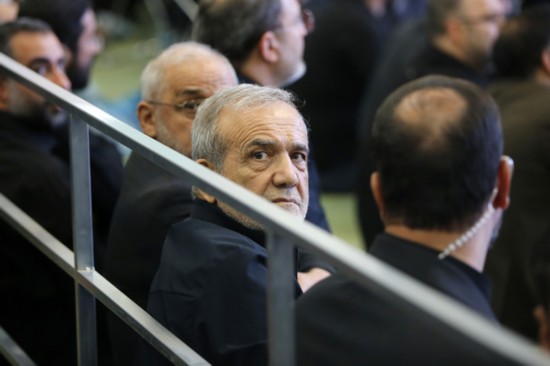 7月2日,伊朗首都德黑兰,伊朗总统佩泽希齐扬参加纪念仪式。新华社发