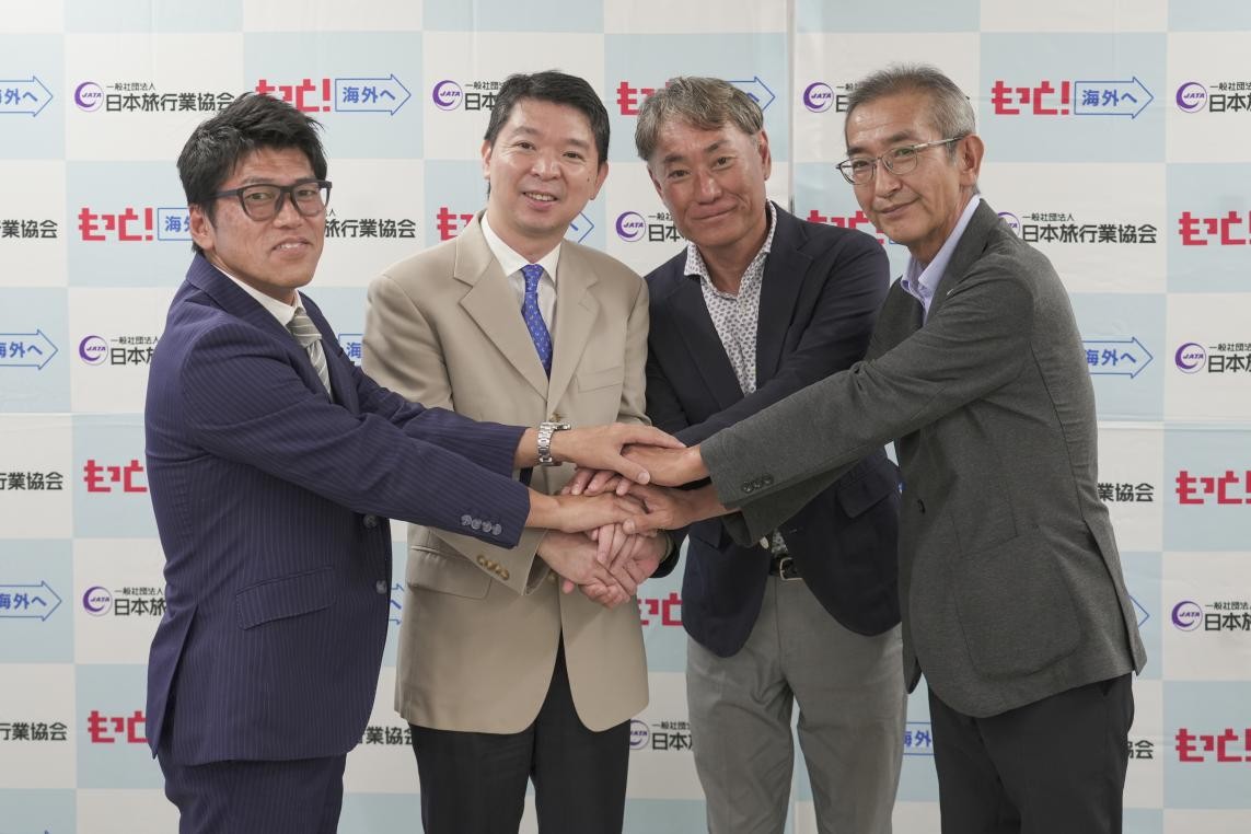 发起方共同握手预祝活动取得圆满成功。中国驻东京旅游办事处供图