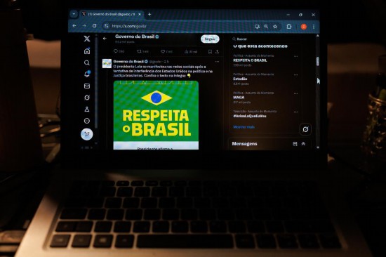 这是7月9日在里约热内卢拍摄的巴西政府官方账号发布的“尊重巴西”图文声明。新华社发(克劳迪娅·马尔提尼摄)