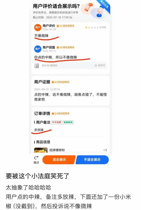 中青报·中青网记者曾关注到,当下,在外卖、二手交易等线上平台,由于买卖双方各执一词,有年轻人化身“赛博判官”(在一些网络平台上受邀评判评论合理性、交易纠纷等的大众评审员——记者注),面对“公说公有理,婆说婆有理”的场面,作出自己的判断。