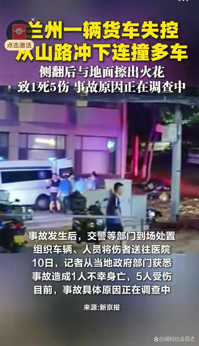 兰州货车失控连撞多车 事故致1死5伤引发热议