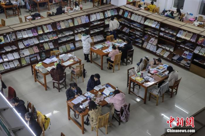 资料图:高校图书馆内,学生正在看书复习。 中新社记者 瞿宏伦 摄