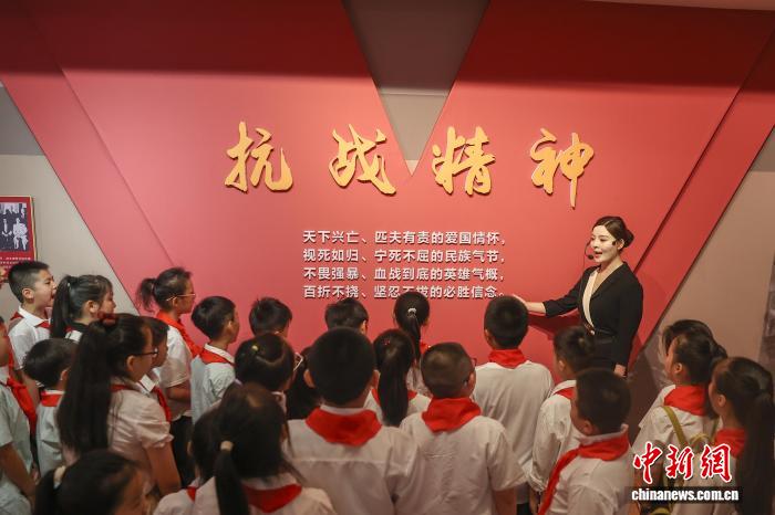 8月15日,江西南昌,一群学生在南昌新四军军部旧址陈列馆内参观。中新社记者 刘力鑫 摄