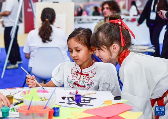8月18日,俄罗斯小朋友在喀山举行的第三届俄罗斯-中国互利合作“萌芽”论坛上绘制京剧脸谱。新华社记者 张超群 摄