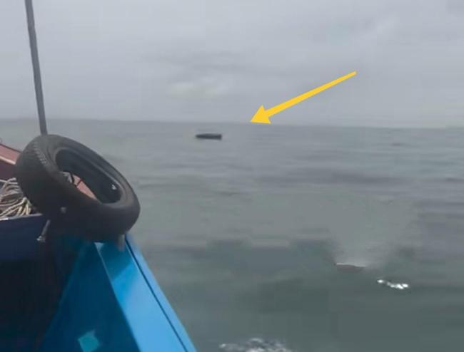 果然,橡皮艇外沿伸着一只脚。渔民呼唤了几声,艇内的男子疲惫地招了下手。渔民急忙扔过去绳子,但男子已经没有力气抓住。渔民只好把船靠上去,几个人合力把他抬到了渔船上。