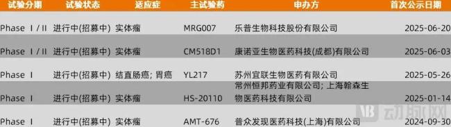 图6.目前进入临床阶段的CDH17靶点药物(数据来源:医药魔方,动脉网整理)