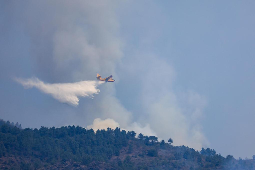8月11日,消防飞机在意大利坎帕尼亚大区维苏威国家公园扑救山火。新华社发