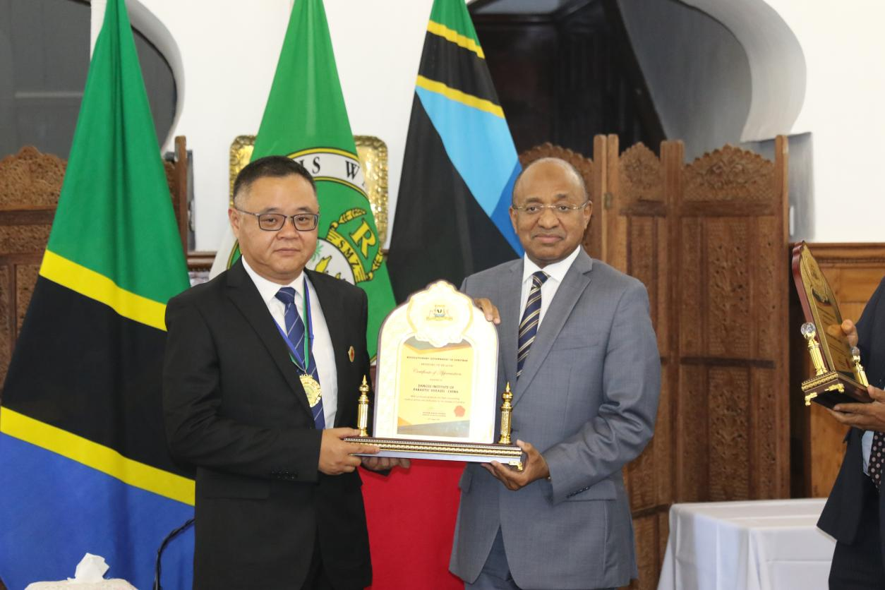 坦桑尼亚桑给巴尔总统向中国援助桑给巴尔血吸虫病防治技术项目专家组授勋