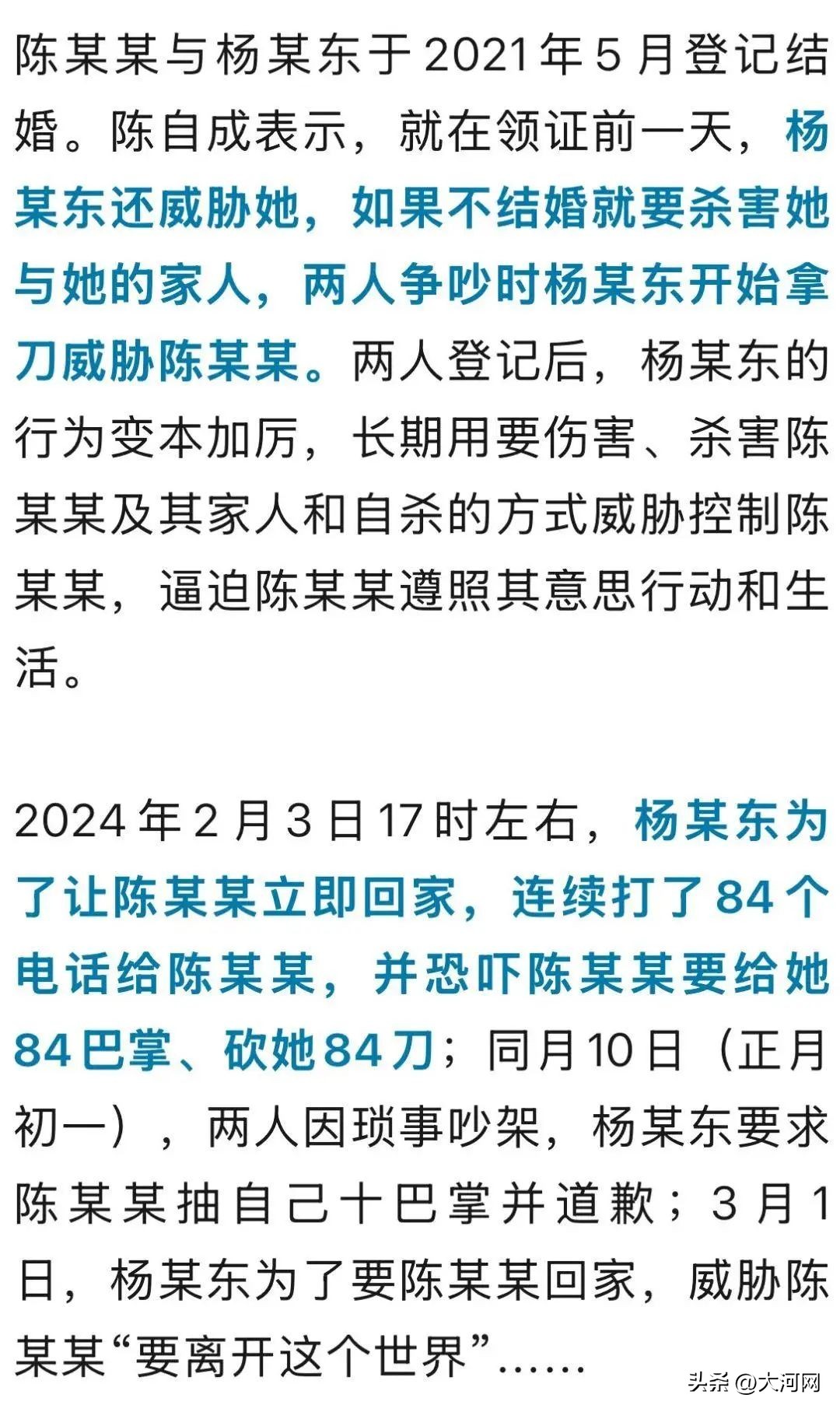 两人相处久了后,杨某东的性格缺憾便慢慢显现。陈某某的妹妹表示,杨某东一直以来在精神上控制她姐姐。杨某东不允许陈某某与异性接触,一旦她与朋友外出,他便会疯狂打电话甚至报警、跟踪。到了后来,他干脆就强逼陈某某带他一并外出。“我姐姐与朋友出去吃饭,他就会在旁边另开一桌,监视着姐姐的一举一动。”