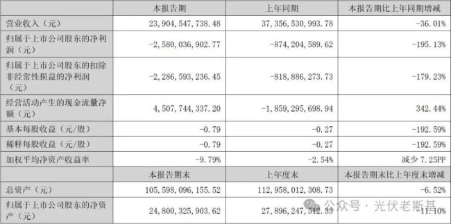 8月22日,晶澳科技发布2025年半年度报告显示,今年1-6月,公司实现营业收入239.05亿元,同比下降36.01%;归母净利润亏损25.80亿元,较上年同期亏损8.74亿元相比,亏损幅度扩大了195%。
