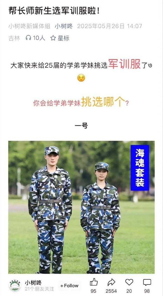 然而,一名大二学生表示,今年军训尚未开始,服装并不是网上所说的红色款式。他还提到,公开投票选军训服装的文章并非学校官方组织,而是由学生自行发起。