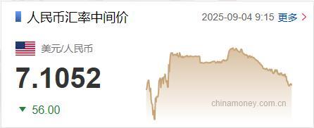 9月4日人民币对美元中间价报7.1052元 上调56个基点