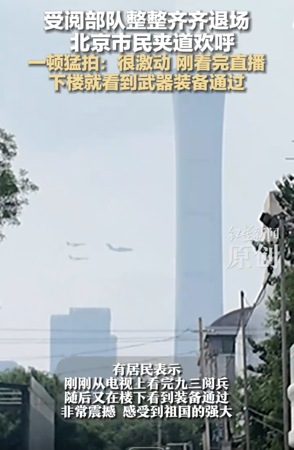 9月3日,阅兵仪式结束后,部队官兵以同样昂扬的姿态有序退场。他们保持着严整的队形,步伐铿锵有力、整齐划一,歌声飘扬。