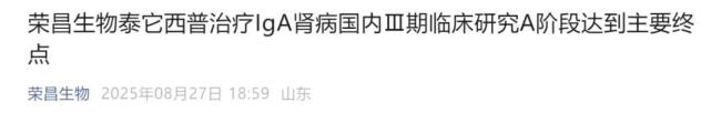 8月27日,荣昌生物宣布其自主研发的全球首创BLyS/APRIL双靶点融合蛋白创新药泰它西普(商品名:泰爱®)用于治疗IgA肾病的国内Ⅲ期临床研究,达到A阶段的主要研究终点。研究结果显示,与安慰剂组相比,泰它西普组患者在治疗39周时24小时尿蛋白肌酐比值(UPCR)降低了55%(P<0.0001),且表现出良好的耐受性和安全性。荣昌生物表示将尽快向CDE递交该适应症的上市申请,详细数据将在国际重大学术会议上公布。