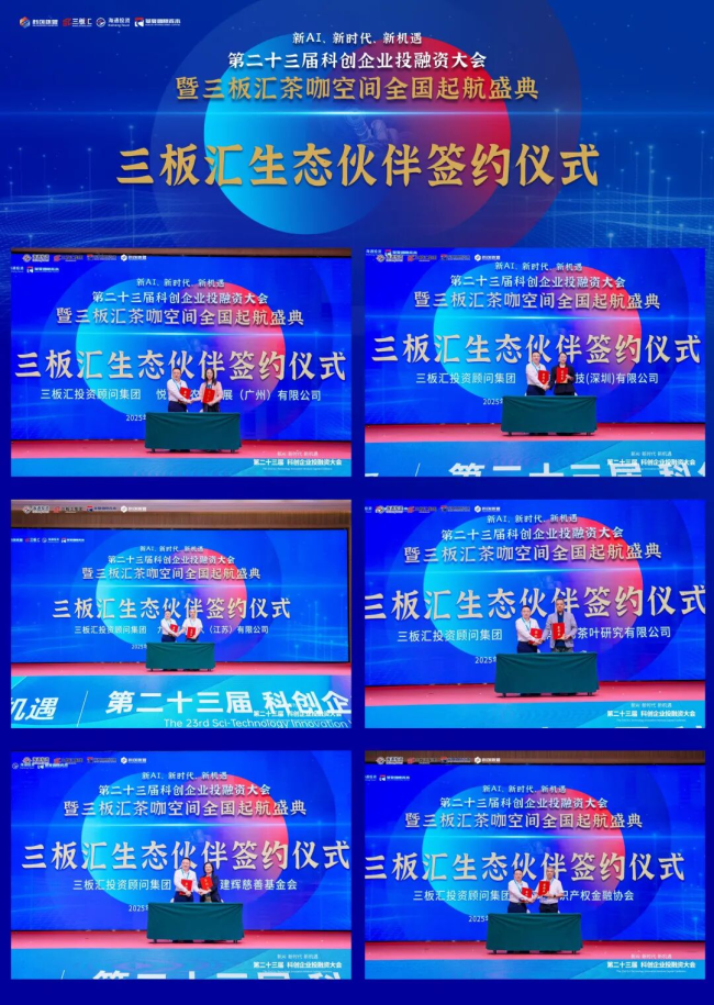 会议压轴环节,发改委宏观经济杂志社“经济专家”、优势资本管理合伙人郑翔洲进行《新商业模式》专题演讲。他结合前沿投资案例,剖析数字时代商业模式重构与资本价值重塑的内在逻辑。此后,三板汇生态伙伴签约仪式顺利举办,九九咖机器人(江苏)有限公司、普洱单株码茶叶研究有限公司、悦山海农业发展(广州)有限公司、深圳知识产权金融协会、俭碳官科技(深圳)有限公司、深圳市建辉慈善基金会六家机构正式成为三板汇生态合作伙伴,各方将共同推进“产业—资本—数字化”多元协同与创新实践。