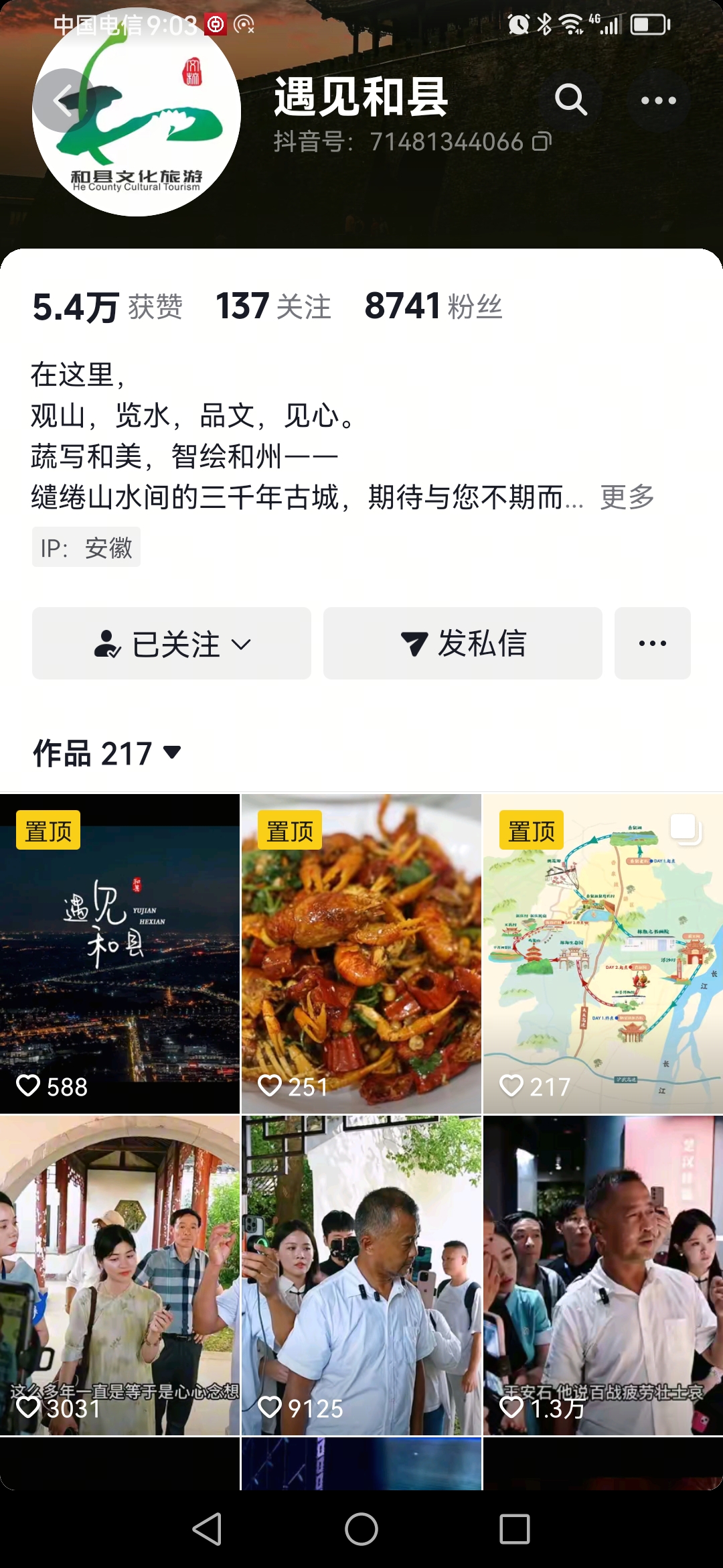 但是,我们也注意到,和县文旅主办的“遇见和县”平台上,到9月9日,只发了沈巍和县之行的三个纪实片段,虽然图像清晰,讲解清楚,但并没有画外音的介绍,更没有代表和县文旅立场的新闻体描述。