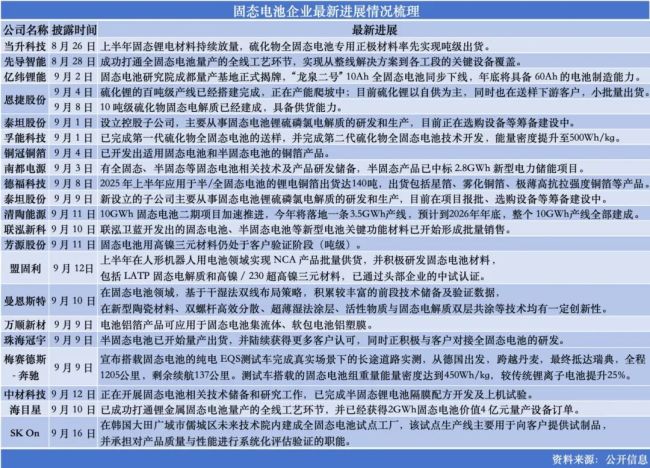固态电池股价飙升,往往伴随消息面的刺激,政策东风最具催化效力。继今年4月工信部发布《2025年汽车标准化工作要点》明确推动制定继发布人工智能、固态电池、电动汽车换电等标准子体系,5月中国汽车工程学会正式推出《全固态电池判定方法》首次明确全固态电池的定义后,9月又迎重磅政策。