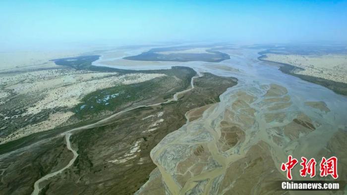 极目远眺,塔克拉玛干沙漠,在天地相接处
