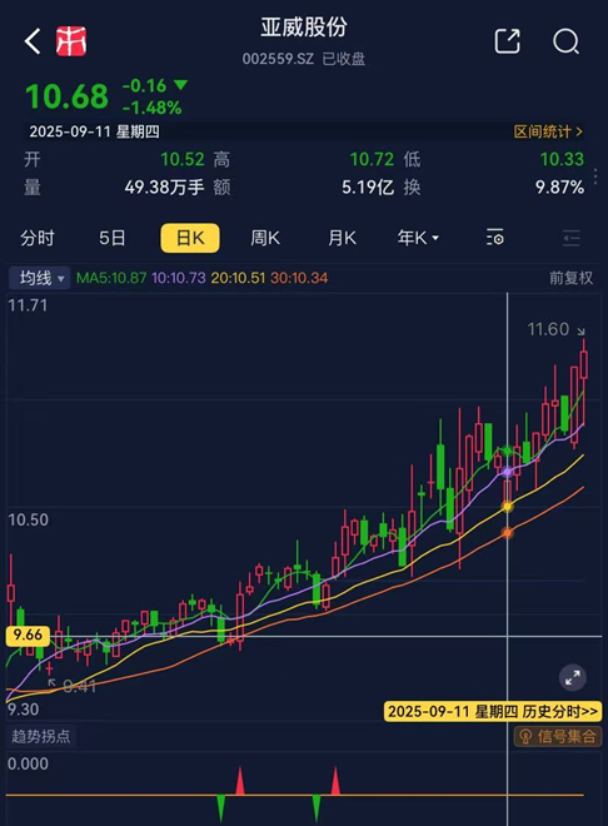 亚威股份(002559.SZ)的董事长在9月10日晚间公告计划拟减持不超过0.64%,但这个消息似乎对公司股价并没有什么影响,随后一个交易日股价低开超4个点后,迅速修复。