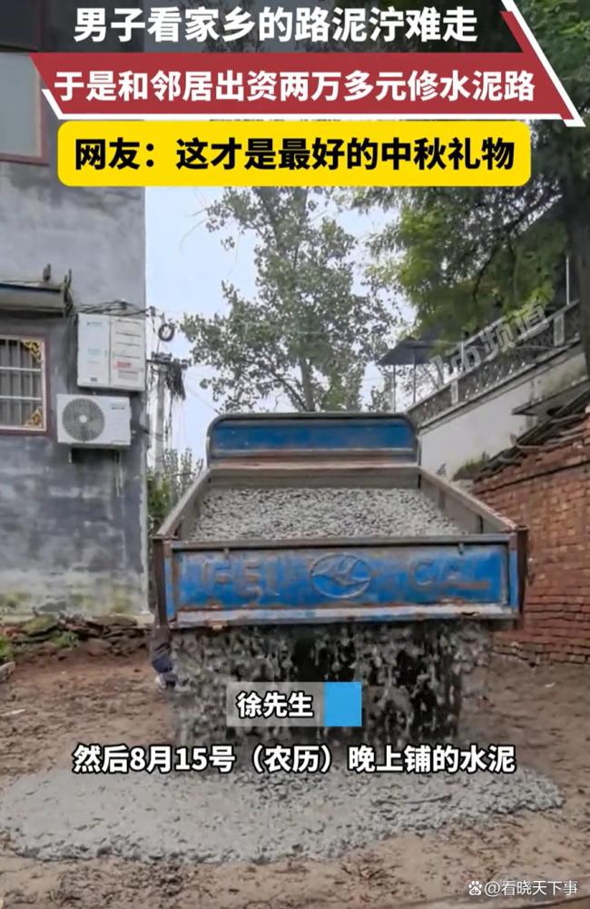 男子和邻居们自费2万元铺水泥路 善举温暖全村