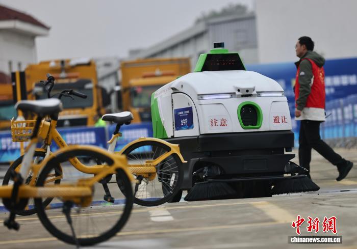 成都“无人驾驶环卫车”同台竞技 “智慧清洁”驶入城市生活