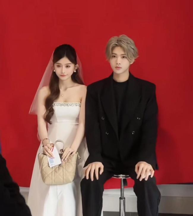 在拍摄正式结婚照时,鹿哈正襟危坐,双手放在膝盖上,表情十分认真。老婆同样如此,微微低着头以求更加上镜。她的身材保持得很好,手臂纤细修长,“事业线”也很突出,香肩迷人。不过手指长度看起来有些奇怪,可能是修图效果所致。