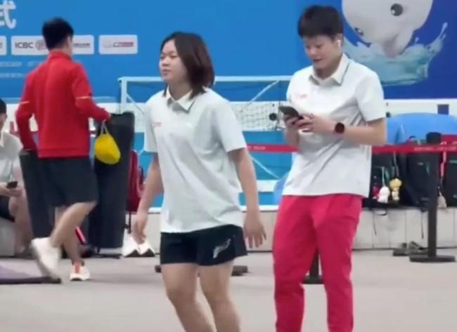 全红婵贴满肌贴进行赛前训练 伤病恢复中复出首战