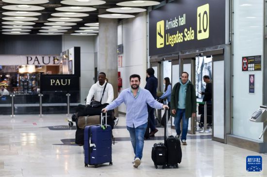 1月15日,旅客抵达西班牙马德里巴拉哈斯机场。新华社发(古斯塔沃·巴连特摄)