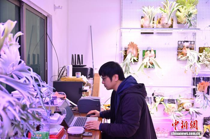 1月22日,赖昀辰在位于广州市的兰花基地处理兰花线上订单。中新社记者 陈楚红 摄
