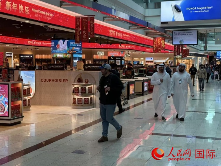 迪拜国际机场内洋溢中国新年氛围。人民网记者 张志文摄