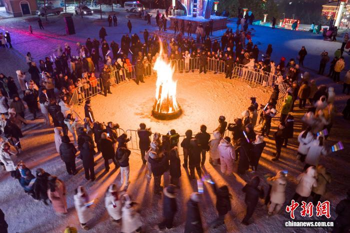 传统民俗+冰雪互动 八方游客“神州北极”闹元宵