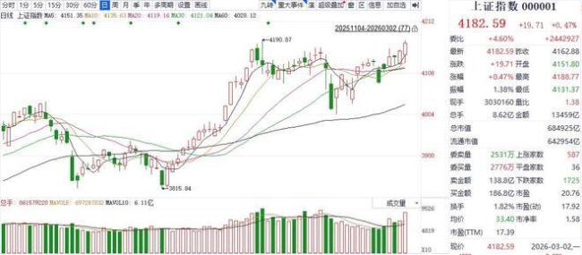 2026年3月4日,A股市场迎来一次显著调整。上证指数开盘即跌0.85%,报4087.63点,失守4100点整数关口;创业板指跌幅更大,下挫1.19%至3171.19点,3200点支撑位宣告失守。深成指与科创50指数同步走低,分别下跌1.2%和0.6%。从盘面看,市场情绪明显偏弱,黄金、有色金属、化工、军工等前期热门板块领跌,仅航运、油气板块在早盘短暂强势后多数转跌,半导体板块则成为当日为数不多的亮点。