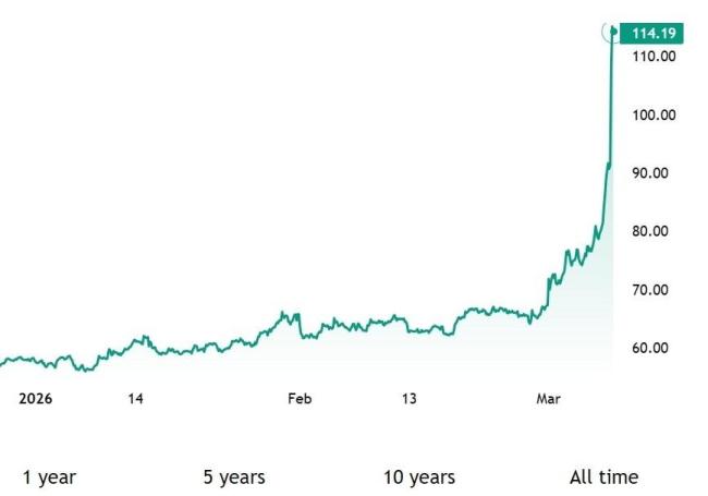 受中东局势升级影响,中东地区石油运输持续受阻,伊拉克、卡塔尔等主要产油国此前已宣布减产,国际油价涨幅持续扩大。WTI原油期货一度突破111美元/桶,日内涨超22%。布伦特原油期货也一度向上触及111美元/桶,日内涨近20%,延续上周28%的涨幅。美国总统特朗普在“真实社交”上发帖称,为消除伊朗核威胁而付出“短期油价上涨”的代价“微不足道”。
